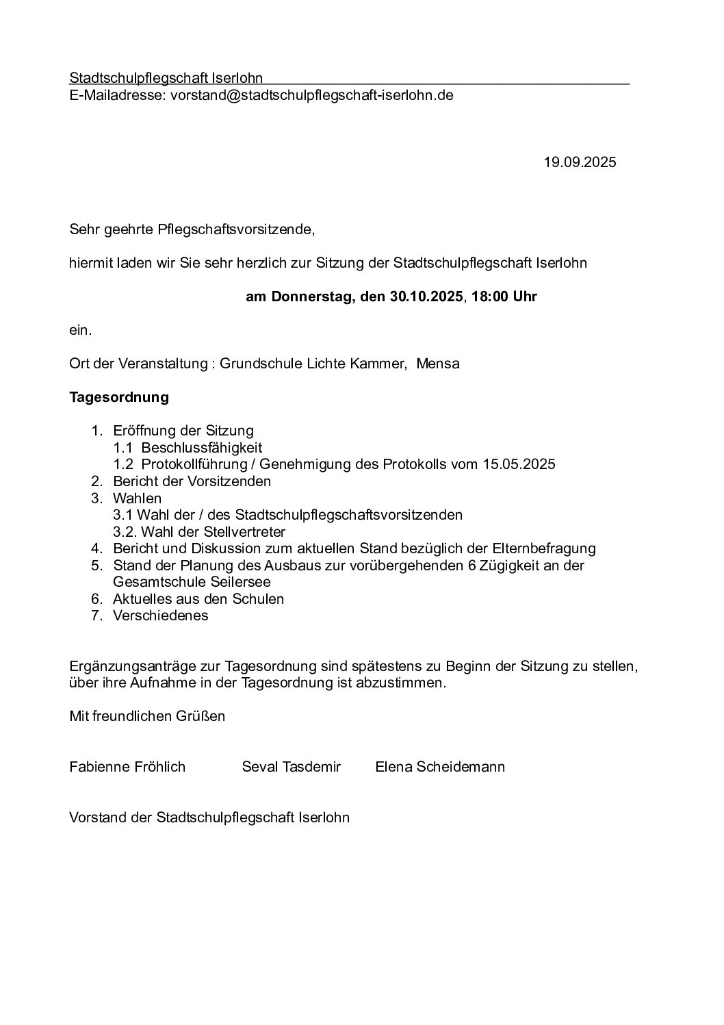 In mehreren Terminen hat sich die Stadtschulpflegschaft am im Juni, August und September zum Arbeitskreistreffen bezüglich der anstehenden Elternbefragung getroffen.